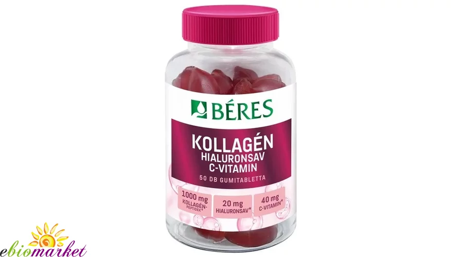 Cukormentes gumitabletta felnőtteknek kollagénnel, hialuronsavval és C-vitaminnal.