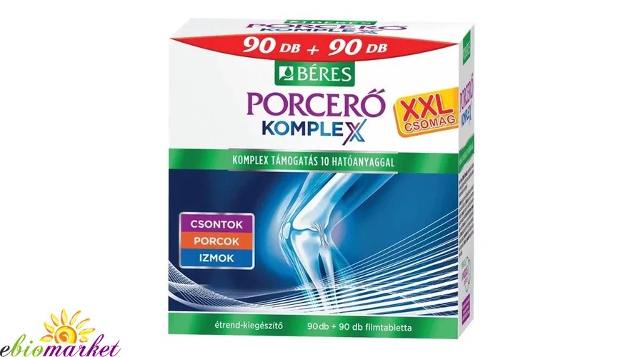Porcerő komplex étrend-kiegészítő készítmény C-vitaminnal, glükózamin-szulfáttal, kalciummal, magnéziummal, valamint további vitaminokkal és ásványi anyagokkal a csontok, a porcok és az izmok megfelelő működésének támogatásáért.