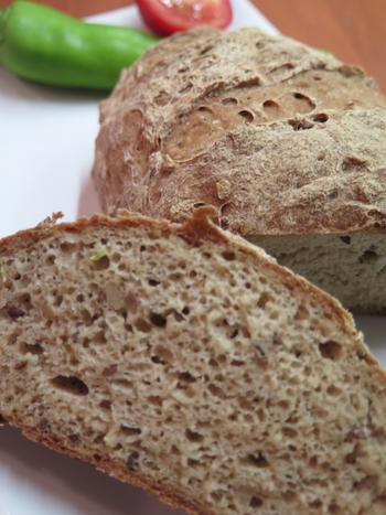 Elkészítés: A száraz hozzávalókat összekeverjük, majd hozzáöntjük a langyos vizet és robotgép dagasztójával dagasztjuk 2-3 percig. Letakarva langyos helyen 45 percig kelesztjük. Közben előmelegítjük a sütőt 200 fokra légkeverésen. A kelesztés után átgyúrjuk a tésztát, ketté vesszük és két cipót formálunk belőle. Három helyen bevágjuk, még egy kicsit letakarva 10 percig kelesztjük. Ezt követően 1 órán át sütjük 200 fokon. Rácson hagyjuk kihűlni, 4-5 napig friss, de le is fagyasztható. Langyosan még ropogós héjjal a legjobb, nem lehet abbahagyni a falatozást friss zöldségekkel, felvágottakkal.